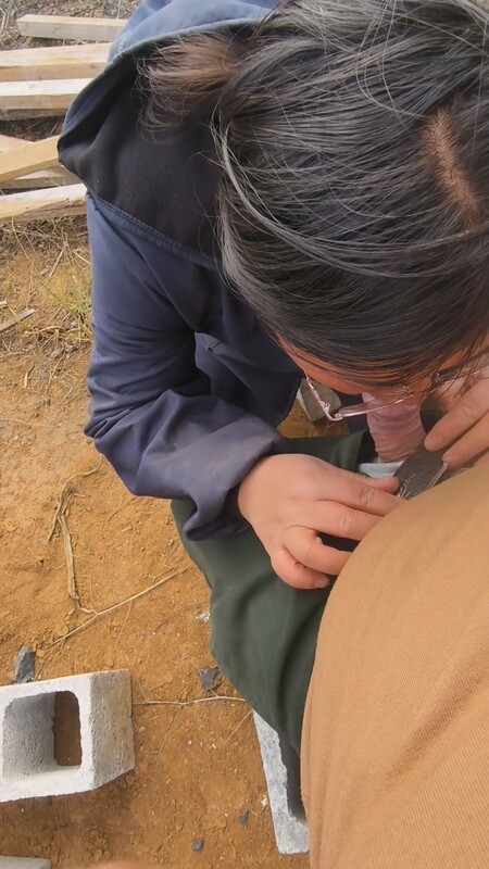 在养殖场做事看着妈妈挥动锄头