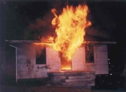 他们说是乡间一个废弃的小屋,某电影厂就地拍摄一个失火的片段,而拍摄剪辑中出现下面画面(注意看火的样子)