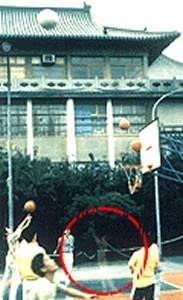 这是古城西安的一所体育学院,照片有些不清晰,红圈中的人影是个大1的新生,他在篮球练习赛中因急性先天性心脏病突发,没到医院就死亡了。但在几天后的正式比赛的照片中他出现了,同班的一个女生(啦啦对队长)拿着照片当场晕倒,醒来后她告诉大家那个鬼影的背心是7号,是死的那个男生生前穿的,而比赛那天那件衬衣就在这个女生的宿舍里。