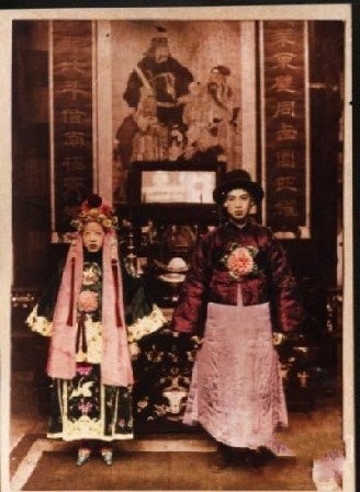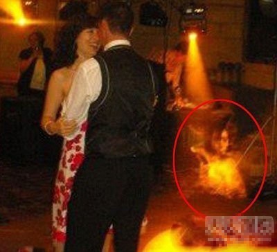 还有,你往后看那个镜子,里面朦胧的东西其实是他们的遗像。你再把照片缩小来整体看那个女人的服饰和那个帽子,象不像给死人烧的纸人?!还有就是右下角有个水印似的人头,你可以把他放大来看。