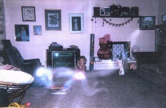 这张照片是一个记者在1993年在印尼拍摄的。记者想要给经常有人被害的一所公寓拍下来。照片被洗出来就是这样的