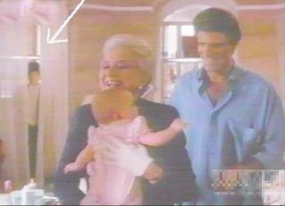 这是一个名为“三个男人和一个女婴儿”的电影中的一个场景。电影胶片洗出来。窗帘后出现了一个男孩。他们说这个男孩就是在拍电影的这间房间自杀的
