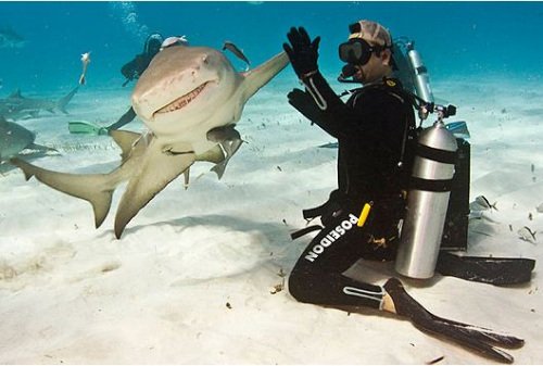中新网3月21日电 据外媒20日报道,伊莱·马丁内兹(Eli Martinez)是一名潜水爱好者,日前他在巴哈马群岛潜水时偶遇一只柠檬鲨(lemon shark)。有趣的是,这只柠檬鲨朝他径直游过来,并没有伤害他,反而用自己的鳍与伊莱“击掌”。这搞笑的一幕被伊莱的朋友拍了下来。